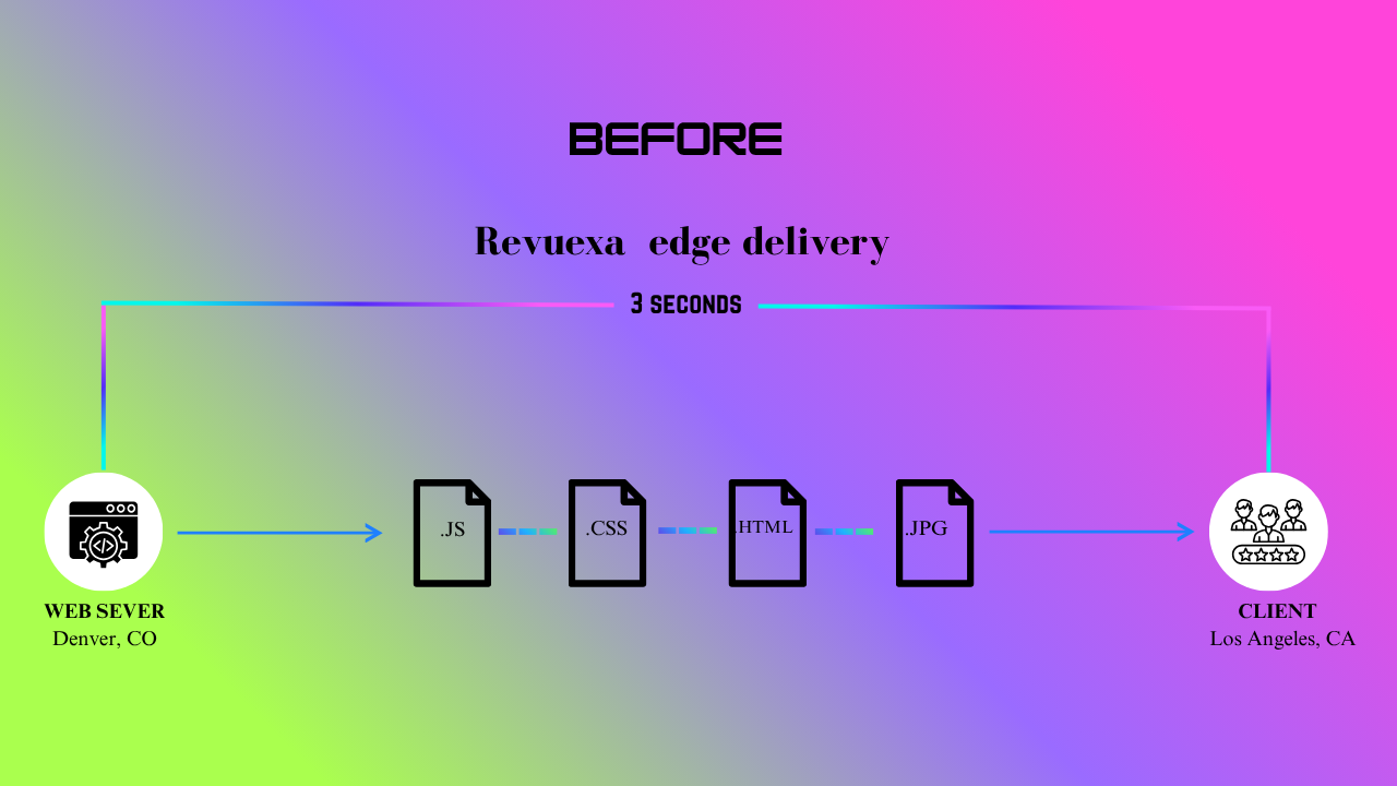 Our advanced content delivery network (CDN) is engineered to do more than just enhance static pages. With Revuexa Edge Delivery™, we bring a new dimension to dynamic content acceleration, ensuring every interactive element, from customer reviews to real-time inventory updates, is delivered with unparalleled speed and efficiency.
